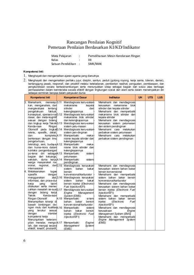 Silabus Pemeliharaan Mesin Kendaraan Ringan Kelas XII SMK Kurikulum 2013 Revisi 2017 - SMK